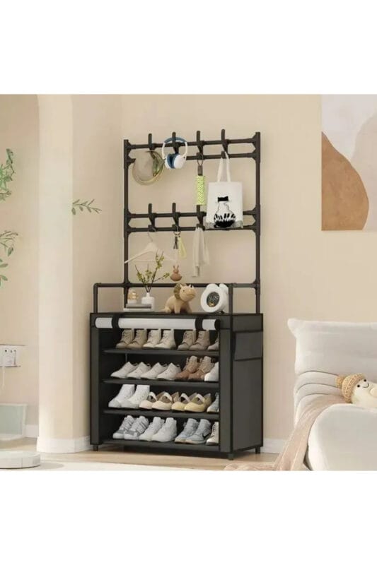 Organizator Incaltaminte, Cuier, 171 cm Inaltime, 4 Rafturi, 12 Perechi, 8 Carlige, PVC,