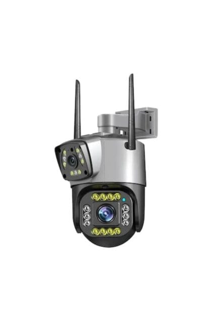 Camera de supraveghere WIFI dubla G900 Pro, 8MP, exterior interior, Ultra HD, zoom 5X, rotatie, LED-uri luminoase, comunicare bidirectionala, alarma, senzor de miscare, Andowl, argintiu