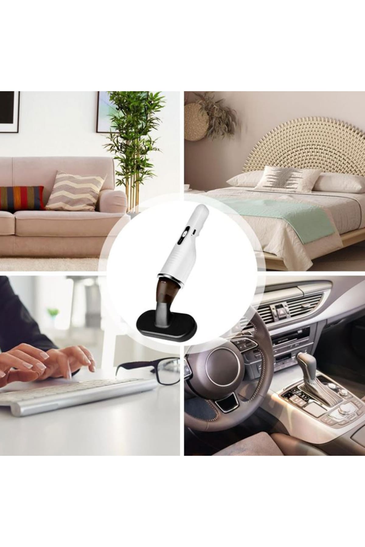 Portable cordless handheld vacuum by EDAR designed for quick cleaning at home, in the car or at the office.; Compact and lightweight with strong suction suitable for dust, crumbs, pet hair and hard-to-reach spaces.; Rechargeable battery with USB Type-C fast charging and a HEPA filter that captures fine particles.; Includes multiple interchangeable accessories for corners and narrow spaces.; Package contents include the handheld vacuum, USB-C charging cable, interchangeable accessories and a spare filter.; Technical specifications summary: Material ABS; Dimensions 41 x 9.5 x 19.5 cm; Power 80 W; Dust capacity 120 ml; Rechargeable battery 2000 mAh / 7.4 V; Noise level under 80 dB; Weight 450 g.