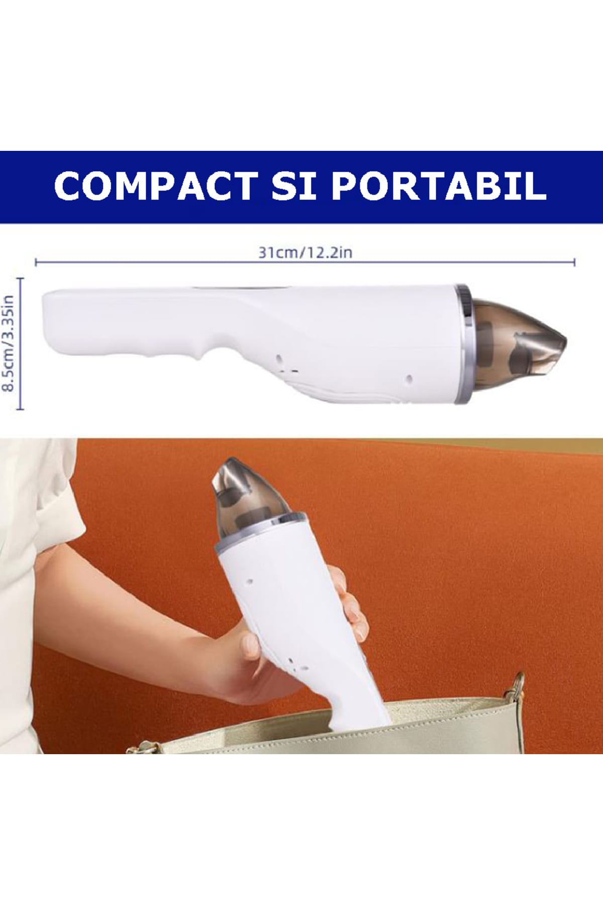 Aspirator Portabil, Fara Fir, 80W, Filtru HEPA, USB Type C, Casa Masina, Curatare Rapida,