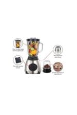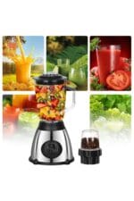 Transforma-ti bucataria intr-un spatiu profesional cu acest Blender 2-in-1, care combina puterea unui motor de 2200W cu versatilitatea unei rasnite de cafea.; Ideal pentru a prepara rapid orice, de la smoothie-uri cremoase la cafea proaspat macinata.; Performanta de Top si Control PrecisMotorul puternic de 2200W asigura o mixare rapida si uniforma, capabila sa pulverizeze eficient chiar si cele mai dure ingrediente.5 Viteze Variate: Poti adapta puterea blenderului in functie de consistenta dorita, oferind control precis asupra procesului, de la amestecare fina la pulverizare grosiera.; Versatilitate 2-in-1: Unitatea principala este perfecta pentru a prepara smoothie-uri, supe-creme si sosuri, in timp ce rasnita inclusa iti permite sa macini rapid boabe de cafea sau condimente.; Durabilitate si Usurinta in IntretinereConstruit din materiale de cea mai buna calitate, acest blender este proiectat pentru a rezista in timp, oferind un design elegant negru-argintiu care se integreaza perfect in orice bucatarie.; Carcasa Solida: Carcasa durabila din inox si ABS confera blenderului o constructie rezistenta la uzura.; Bol din Sticla: Bolul principal, cu o capacitate generoasa de 1.5L, este fabricat din sticla groasa, fiind rezistent la temperaturi ridicate si la uzura zilnica.; Curatare Simpla: Componentele demontabile sunt usor de curatat sub apa curenta sau in masina de spalat vase.; Beneficii Cheie:Eficienta: Motor de 2200W pentru mixare rapida.; Flexibilitate: 5 viteze pentru control maxim.; Durabilitate: Carcasa din inox si bol rezistent din sticla.; Functie Dubla: Blender si rasnita de cafea inclusa.; Acest blender este optiunea perfecta pentru gatitul acasa, economisind timp si efort, oferind in acelasi timp rezultate profesionale.