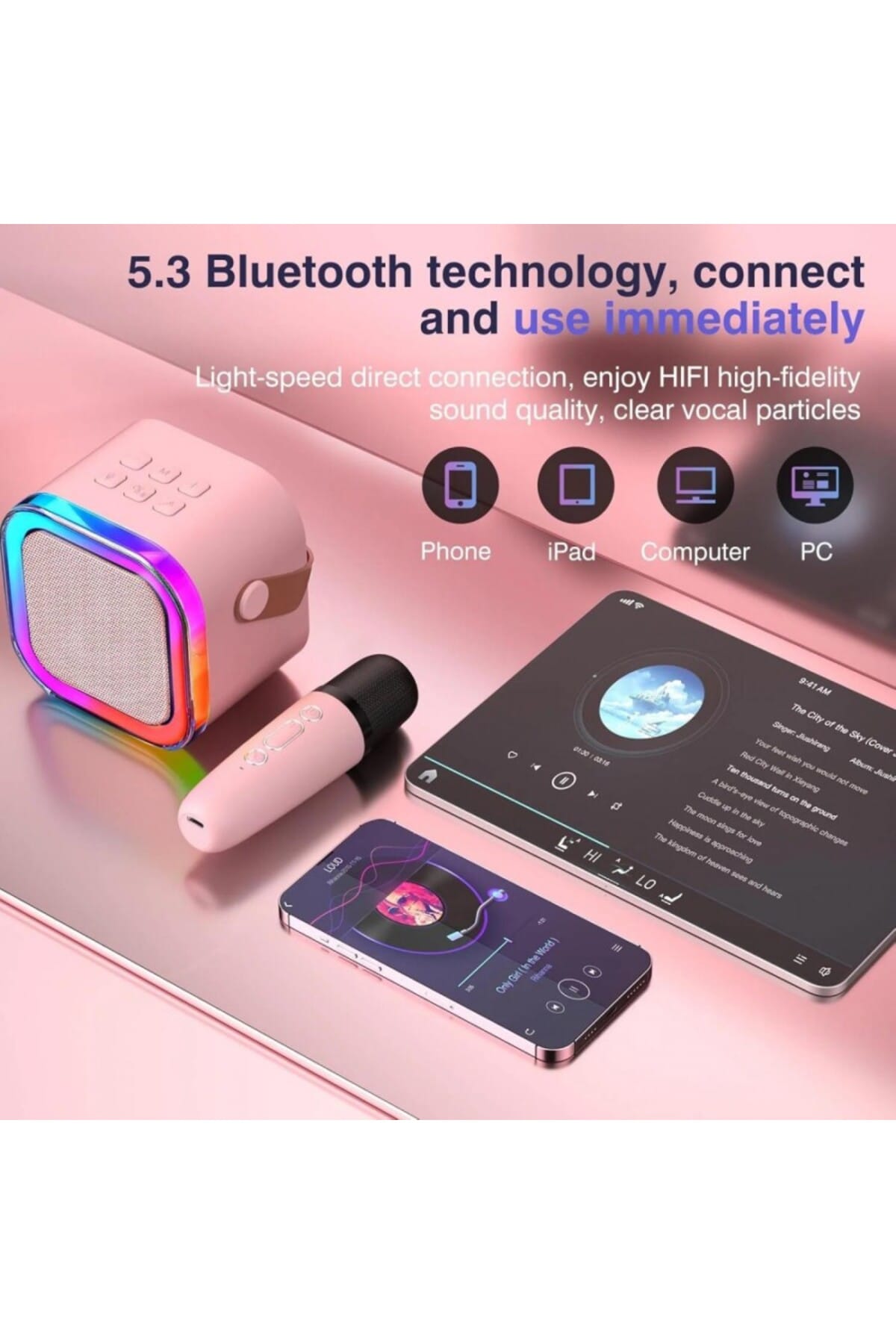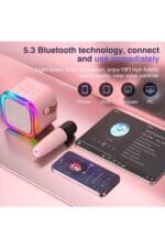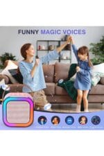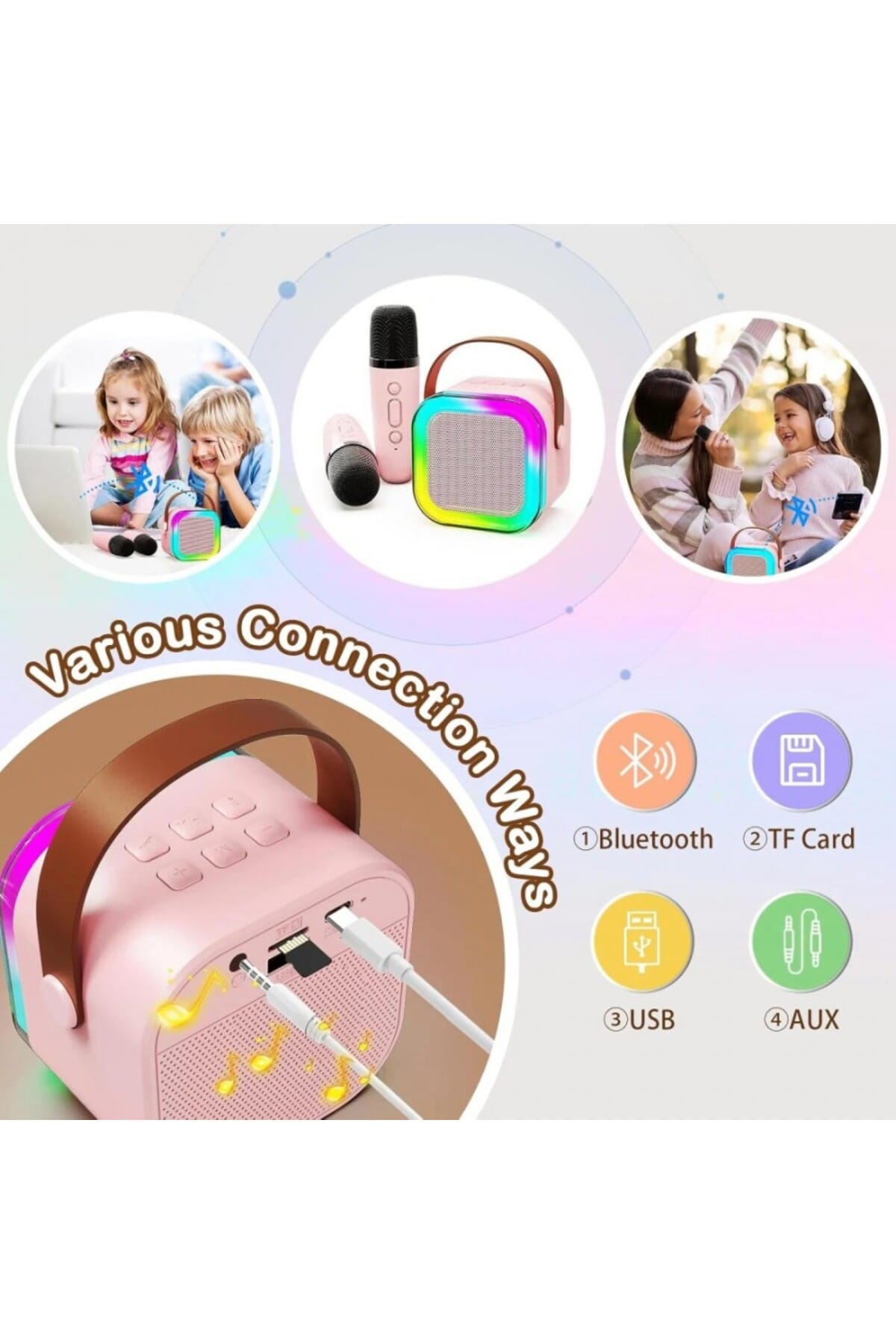 Boxa Karaoke Portabila pentru copii cu 2 Microfoane Wireless, LED RGB, Bluetooth, Radio FM