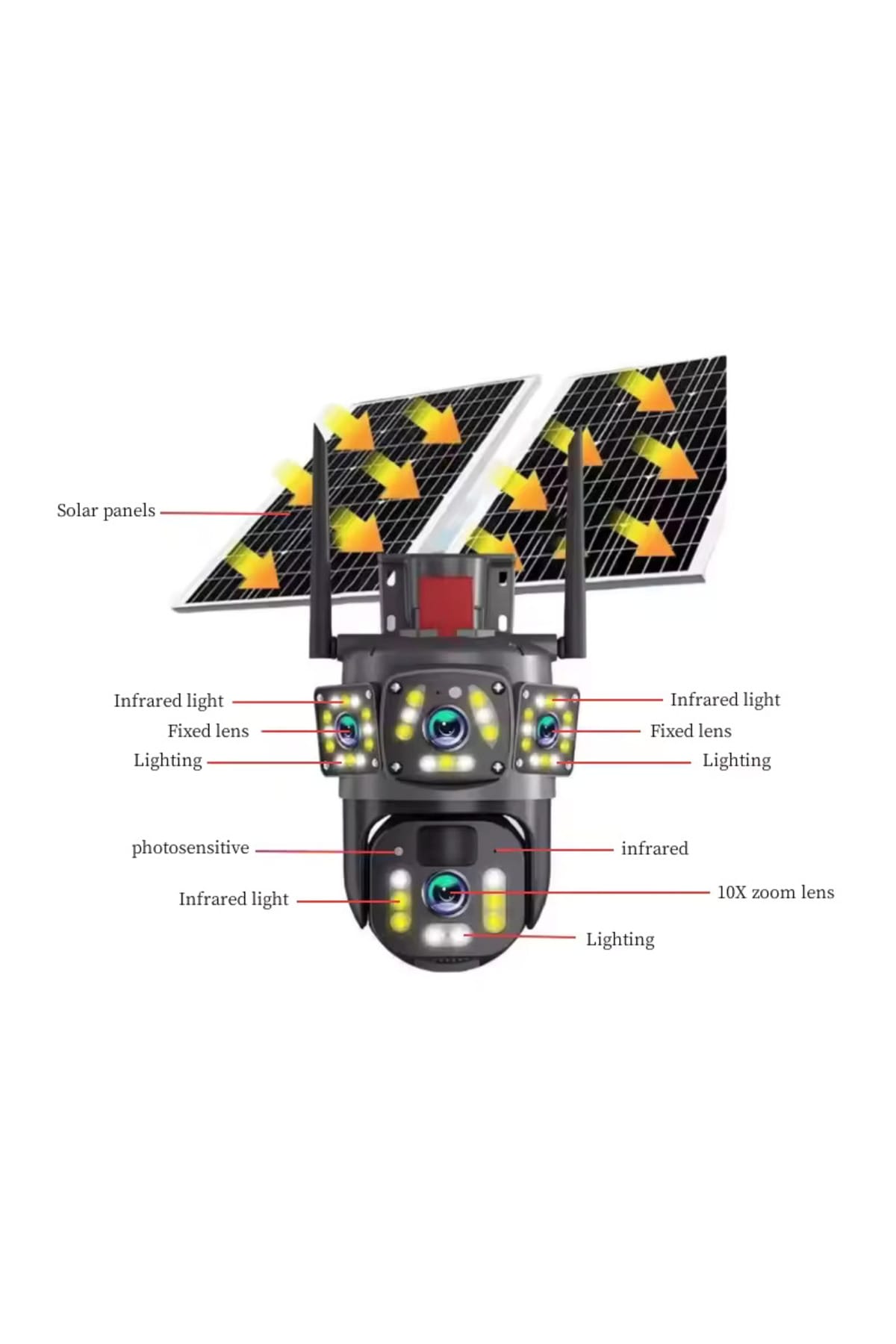 Aceasta Camera de Supraveghere (Model TSS-YT01) este un model de Top, conceput pentru monitorizarea proprietatii fara a necesita cabluri sau echipamente suplimentare.; Combina conectivitatea 4G cu autonomia data de Panoul Solar, oferind o acoperire completa si o calitate excelenta a imaginii.; Autonomie si Conectivitate 4GCamera este ideala pentru locatii fara acces la electricitate sau WiFi.; Panou Solar: Includes, de siliciu policristalin de 6W, asigura o sursa de alimentare durabila.; Acumulator: Dotata cu baterie reincarcabila de 18650 mAh, incarcata continuu de panoul solar.; Conexiune 4G LTE: Functioneaza pe Cartela SIM 4G LTE, ceea ce inseamna ca NU depinde de o retea Wi-Fi si poate fi monitorizata de oriunde in lume.; Retea Compatibila: Functioneaza doar in retelele Digi sau Telekom.; Optica Dual Lens si PTZSistemul cu doua lentile ofera monitorizare panoramica si detaliata.; Dual Lens (2 Lentile): O lentila este fixa (unghi larg) si o lentila este mobila (PTZ), asigurand o acoperire completa si monitorizare in timp real pe trei ecrane.; Rezolutie: Ofera imagini clare in 4MP Full HD.; Zoom 10X: Functia de Zoom 10X permite vizualizarea detaliilor de la distanta.; Functii Inteligente si Night VisionDetectie Inteligenta: Senzor de miscare PIR si detectie forma umana AI, care activeaza auto tracking (urmareste tinta) si trimite alarma pe telefon.; Distanta de detectie: pana la 20 m.; Vedere Nocturna: Leduri IR si reflectoare cu lumina alba ofera o calitate superioara pe timp de noapte, inclusiv Night Vision Full Color.; Distanta IR: pana la 30 m.; Audio Bidirectional: Microfon si difuzor incorporate, permitand comunicarea cu exteriorul prin intermediul aplicatiei mobile V360pro.; Durabilitate si StocareRezistenta la Apa: Carcasa din aluminiu si certificare IP66 Waterproof (rezistenta la apa si praf), fiind potrivita pentru orice intemperii.; Stocare: Suporta card TF de pana la 128GB pentru salvarea imaginilor si videoclipurilor.; Specificatii CheieConectivitate: 4G LTE (Digi/Telekom)Sursa Alimentare: Panou Solar 6W + Acumulator 18650 mAhLentile: Dual Lens (2)Rezolutie: 4MP Full HDFunctii PTZ: DaZoom: 10XProtectie: IP66 (Waterproof, Auto-Detection, Audio) Aplicație bidirecțională: V360pro