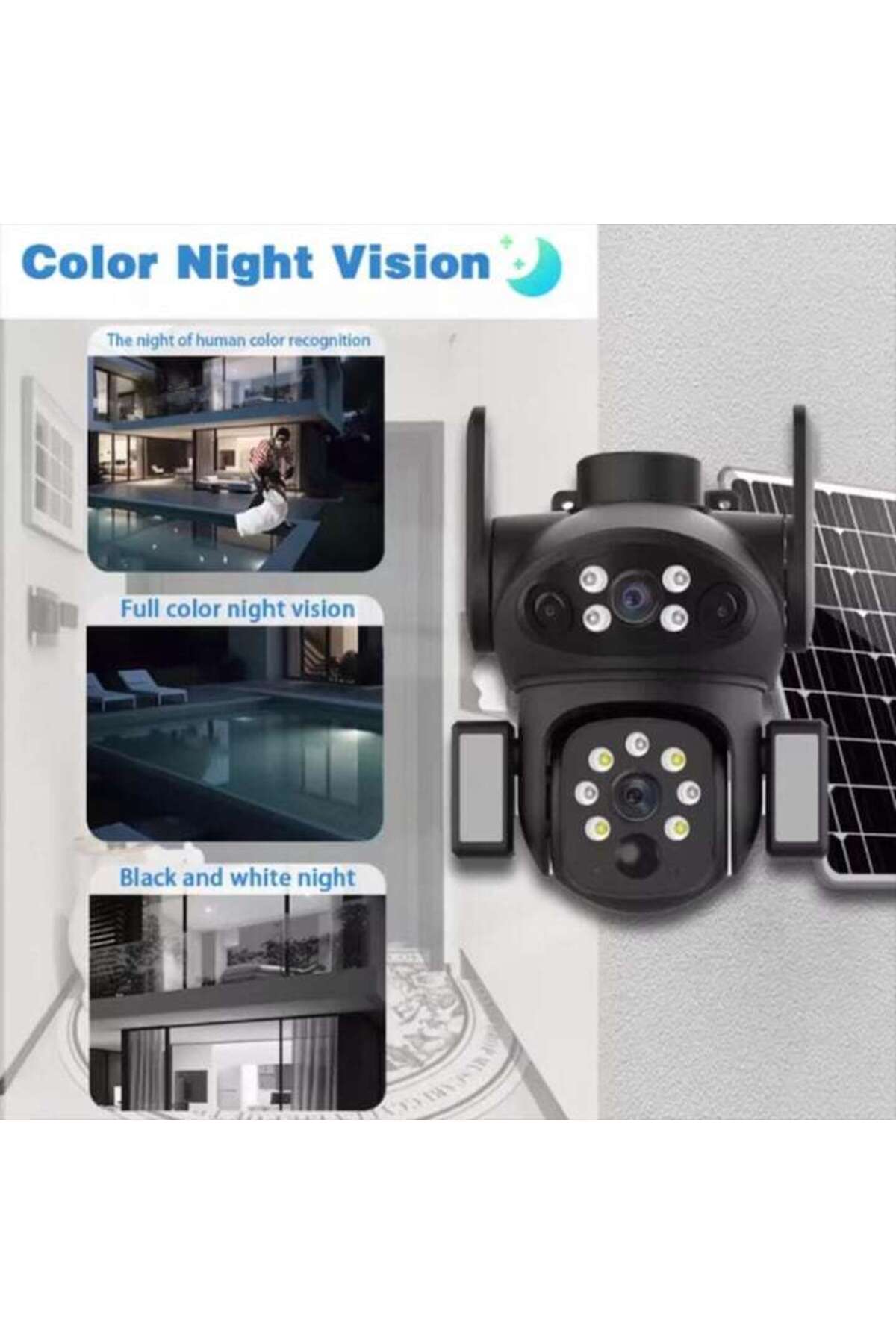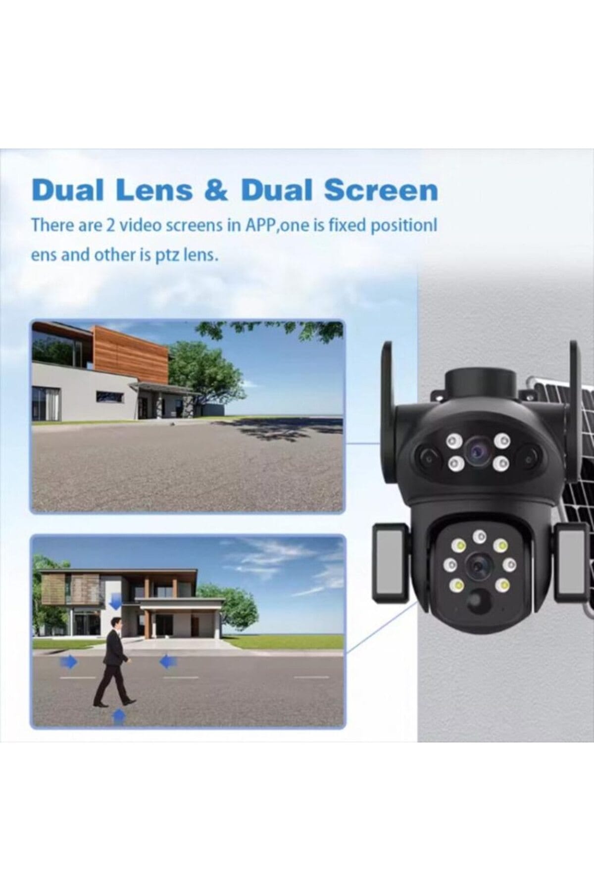 Descoperiti libertatea monitorizarii fara cabluri! Aceasta camera de supraveghere inteligenta PTZ combina tehnologia video de inalta rezolutie cu alimentarea solara, oferind o solutie de securitate complet autonoma, perfecta pentru orice locatie.; Este dotata cu functii AI avansate pentru a detecta precis miscarea umana si a filtra alarmele false.; Autonomie Solara si Control FlexibilPanou Solar Inclus: Camera este complet autonoma, eliminand necesitatea cablurilor de alimentare si fiind ideala pentru instalarea in locuri greu accesibile.; Control PTZ: Beneficiati de control total al unghiului de vizualizare.; Puteti roti camera de la distanta (Pan-Tilt-Zoom) pentru a monitoriza fiecare detaliu.; Viziune Clara 24/7: Cu rezolutie Full HD (1920×1080) si un senzor sensibil (0.1Lux), imaginile sunt clare.; Modul de conversie zi-noapte suporta viziune infrarosu, color complet sau inteligent (IR-CUT).; Securitate Inteligenta cu AISistemul functioneaza pe sistemul de operare AliOS si este echipat cu inteligenta artificiala de ultima generatie pentru a maximiza precizia alertelor.; Detectie Umana AI: Filtreaza zgomotele de fond si alarmele false declansate de vant sau animale, concentrand alarmele pe miscarea umana.; Alarme Personalizate: Suporta alarma luminoasa si alarma vocala personalizata, adaugand un nivel de descurajare vizuala si sonora.; Detectie Regionala: Setati zone specifice de miscare pentru monitorizare tintita.; Specificatii Tehnice si Stocare:Rezolutie: 2MP (1920×1080)Obiectiv: Dual 4.0mm_F1.6Compresie: H.265_AVI (video) si AAC (audio), asigurand eficienta de stocare.; Imbunatatire Imagine: Reducere zgomot 3D, Suprimare lumina puternica, Dinamic Digital Larg.; Stocare: Accepta stocare video locala pe card TF (nu este inclus).; Aceasta camera cu panou solar ofera o securitate de neegalat, combinand usurinta instalarii fara fir cu functii de monitorizare de nivel profesional.