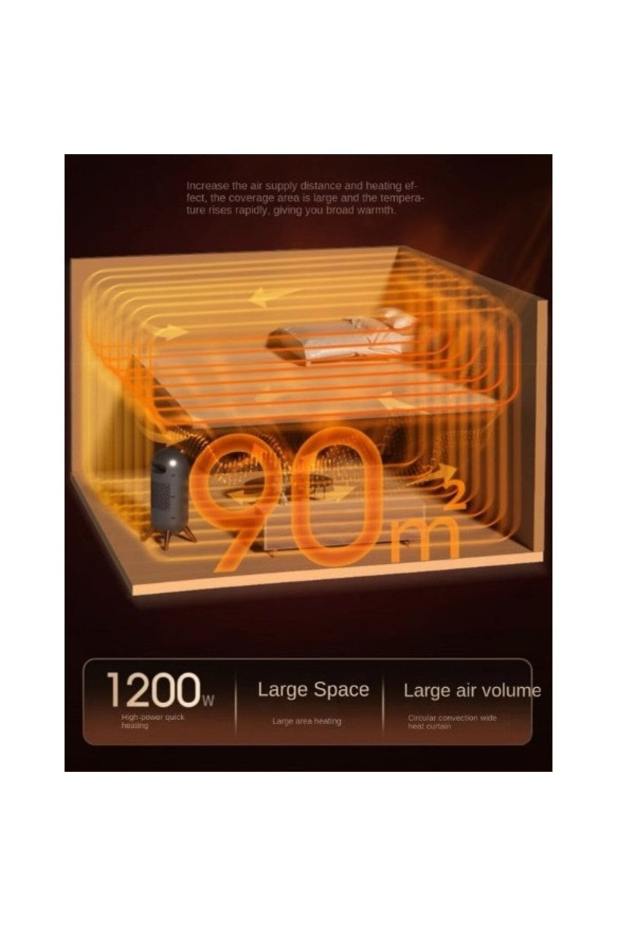 Incalzitor Electric Vertical PTC, 1200W, Aeroterma, Rapid, Silentios, Termostat, Protectie,