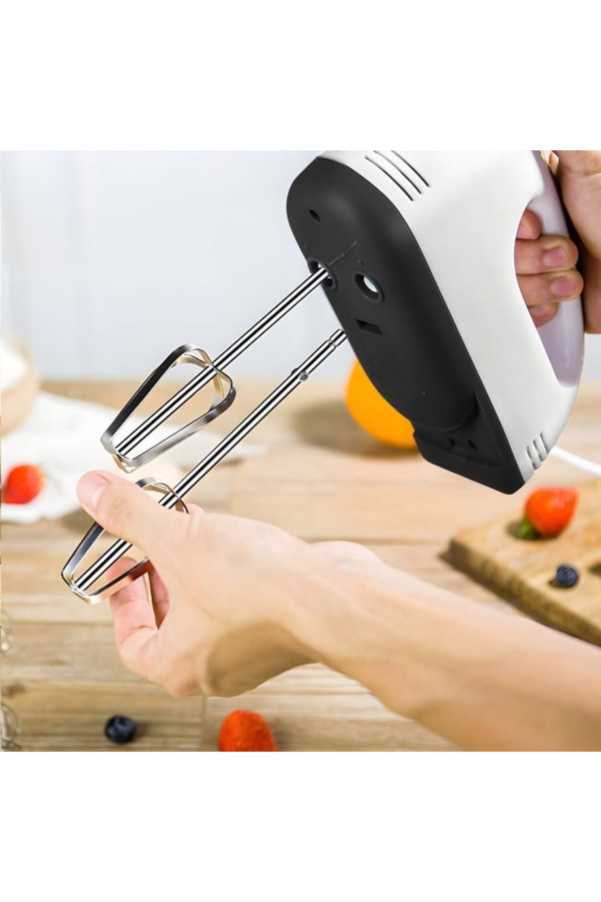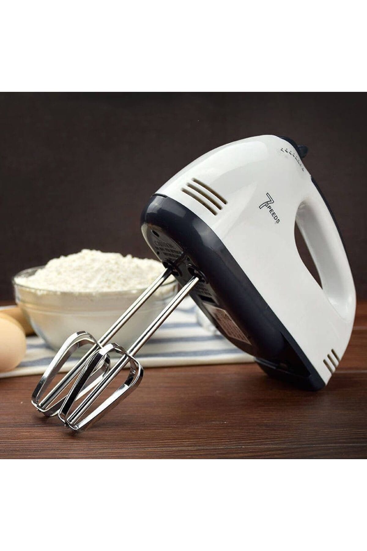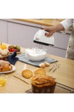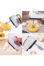 Transforma procesul de gatit cu acest Mixer de Mana Electric, un aparat versatil, esential pentru orice bucatarie.; Echipat cu 7 viteze si capete de amestecare duble (tel si carlige pentru aluat), acesta te ajuta sa bati oua, sa faci frisca sau sa framanti aluat cu usurinta.; Performanta si Versatilitate (7 Viteze)Mixerul ofera o gama larga de viteze pentru a se potrivi oricarei retete, de la amestecarea lenta la baterea rapida.7 Viteze de Amestecare: Permite selectarea vitezei optime:Viteza 1: Pentru amestecarea lenta a ingredientelor aglomerate.; Viteza 4: Ideala pentru piureul de cartofi.; Viteza 7: Pentru baterea rapida a albusurilor si bezelei.; Capete Duble de Amestecare: Include 2 x Batator de Oua (tel) pentru frisca pufoasa si albusuri si 2 x Carlig de Aluat (Framantat) pentru a framanta aluatul cu usurinta.; Versatil: Poate bate oua, framanta aluat (pentru paine), bate smantana etc.; Specificatii TehnicePutere Maxima: 260W (Puterea reala de 180W, dar specificatia din titlu este de 260W; se va folosi titlul)Tensiune Nominala: 220VFrecventa Nominala: 50 HzPozitia Vitezei: 7 vitezeCuloare: Alb (din titlu)Pachet Inclus (Set 7 piese)Pachetul vine cu toate accesoriile necesare pentru diverse sarcini de amestecare.1 x Corp Mixer1 x Separator de albusuri2 x Batator de Oua (Tel)2 x Betisoare cu Taitei (Carlige Aluat)2 x Tija din otel inoxidabil (se presupune ca sunt piesele mentionate mai sus)Specificatii CheiePutere: 260WViteze: 7Tensiune: 220VAccesorii: Palete Tel, Carlige Framantat (Aluat)Utilizare: Bate Oua, Framanta Aluat, FriscaCuloare: Alb