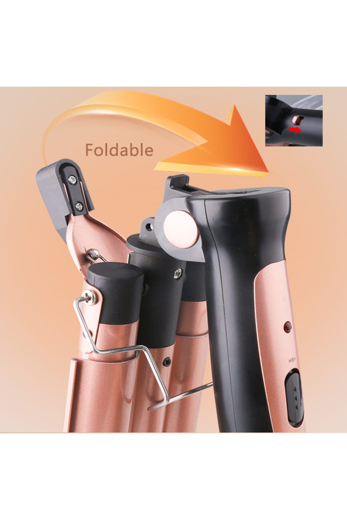 Acest Ondulator de Par Triplu este un instrument profesional, conceput pentru a crea bucle de lunga durata si un aspect .; Combina un design unic cu 3 tuburi cu tehnologia Ioni Negativi pentru a proteja si repara parul in timpul coafarii.; Design si Incalzire Rapida Design Unic: Are un design unic cu 3 tuburi.; Incalzire Rapida: Echipamentul se incalzeste rapid, atingand temperatura optima in 30 de secunde.; Distributie Caldura: Dispozitivul de incalzire cu functie de ondulare asigura o distributie inegalabila a caldurii.; Material Conductor: Materialul conductor de caldura este Aluminiu.; Tehnologie si Protectia Parului Ioni Negativi: Corpul de incalzire PTC elibereaza cantitati mari de ioni negativi.; Reparare Automata: Ioni negativi repara automat parul deteriorat, lasandu-l mai sanatos, si forma buclei mai durabila.; Control Temperatura: Dispune de tehnologie de control al temperaturii.; Specificatii Tehnice Culoare: Auriu.; Putere: 60-105W.; Voltaj: 110V-240V / 50Hz-60Hz.; Dimensiuni Tuburi: Disponibil in dimensiuni de 20MM/22MM/25MM/28MM.; Specificatii Cheie Design: 3 Tuburi Unice Ioni: Negativi (PTC) Incalzire: Rapida (30 Secunde) Voltaj: 110V-240V Putere: 60-105W Functii: Reglaj Automat
