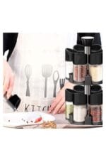 Transforma-ti spatiul de gatit cu acest set de 12 recipiente pentru condimente, perfect pentru a organiza eficient si igienic bucataria.; Suportul rotativ si designul inteligent al capacelor iti ofera acces rapid si precis la toate aromele necesare.; Design si ErgonomieSetul combina un design modern cu o functionalitate superioara, fiind ideal pentru orice blat sau dulap.; Suport Rotativ: Suportul ergonomic se roteste complet, la 360°, asigurand accesul imediat la oricare dintre cele 12 recipiente.; Materiale de Calitate: Recipientele sunt fabricate din plastic rezistent, cu finisaje deosebite care asigura o igiena maxima si o durabilitate crescuta.; Etansare: Sunt prevazute cu filet pentru o buna etansare, pastrand condimentele proaspete.; Dozare Precisa si Curatare SimplaCapacele inteligente si constructia simpla fac ca utilizarea si intretinerea sa fie extrem de usoare.; Dozare Fina: Capacele sunt dotate cu 3 tipuri de gauri, permitand o dozare variata, de la cantitati fine la cantitati mari, in functie de preparat.; Usor de Intretinut: Recipientele sunt usor de folosit, de spalat si de curatat.; Specificatii SetComponente: 12 recipiente + 1 suport rotativCuloare: NegruDimensiuni Totale: 33 x 16 x 12 cmDimensiune Recipient: 115 x 40 mmAcest set este solutia ideala pentru o bucatarie organizata, aducand un plus de eleganta si practicitate.