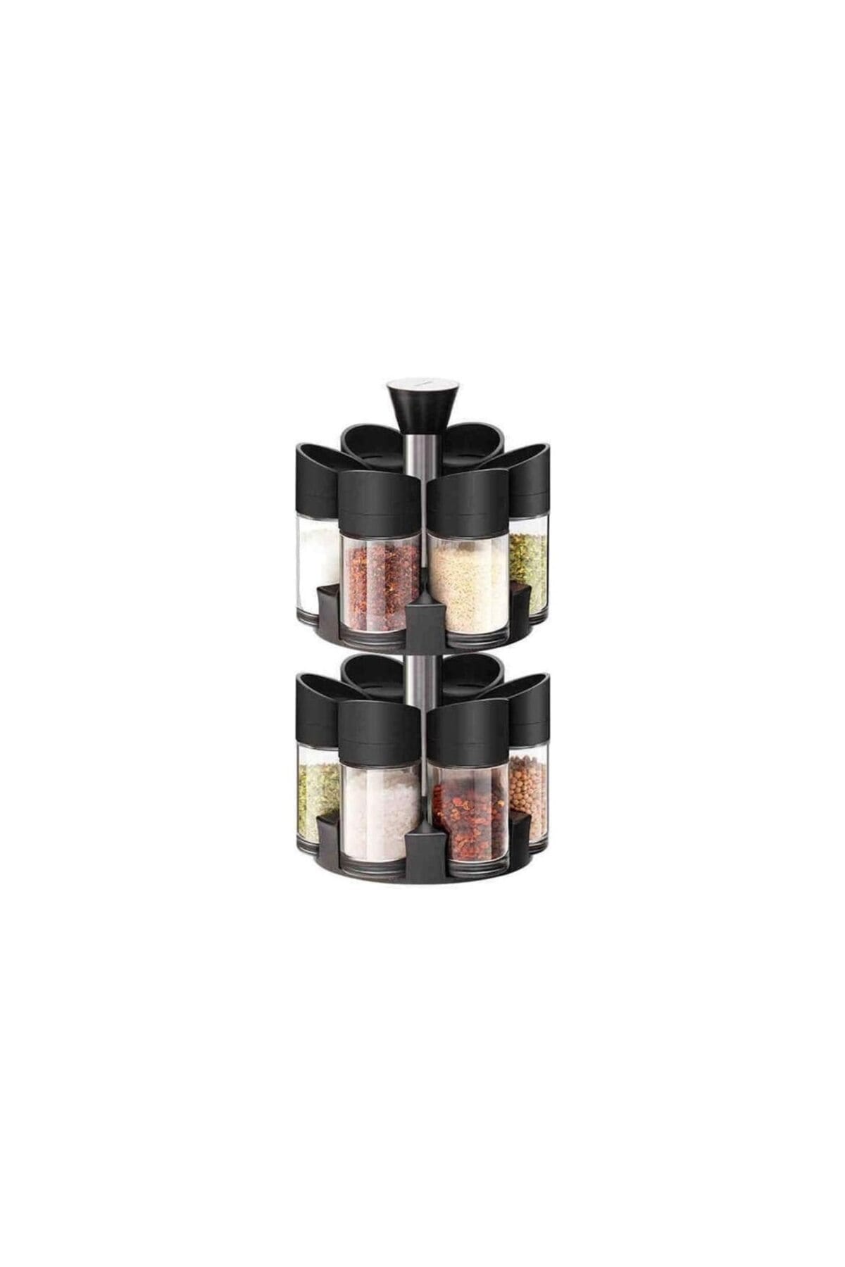Set 12 Recipiente Condimente, Borcane, Suport Rotativ, Organizare Bucatarie, Negru, 33x16x12 cm, Uni