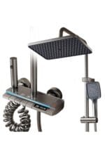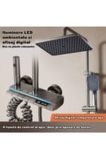 Set Coloana Dus Premium cu Termostat, Afisaj LED, 4 Functii Piano, Gri Grafit, Tip Ploaie