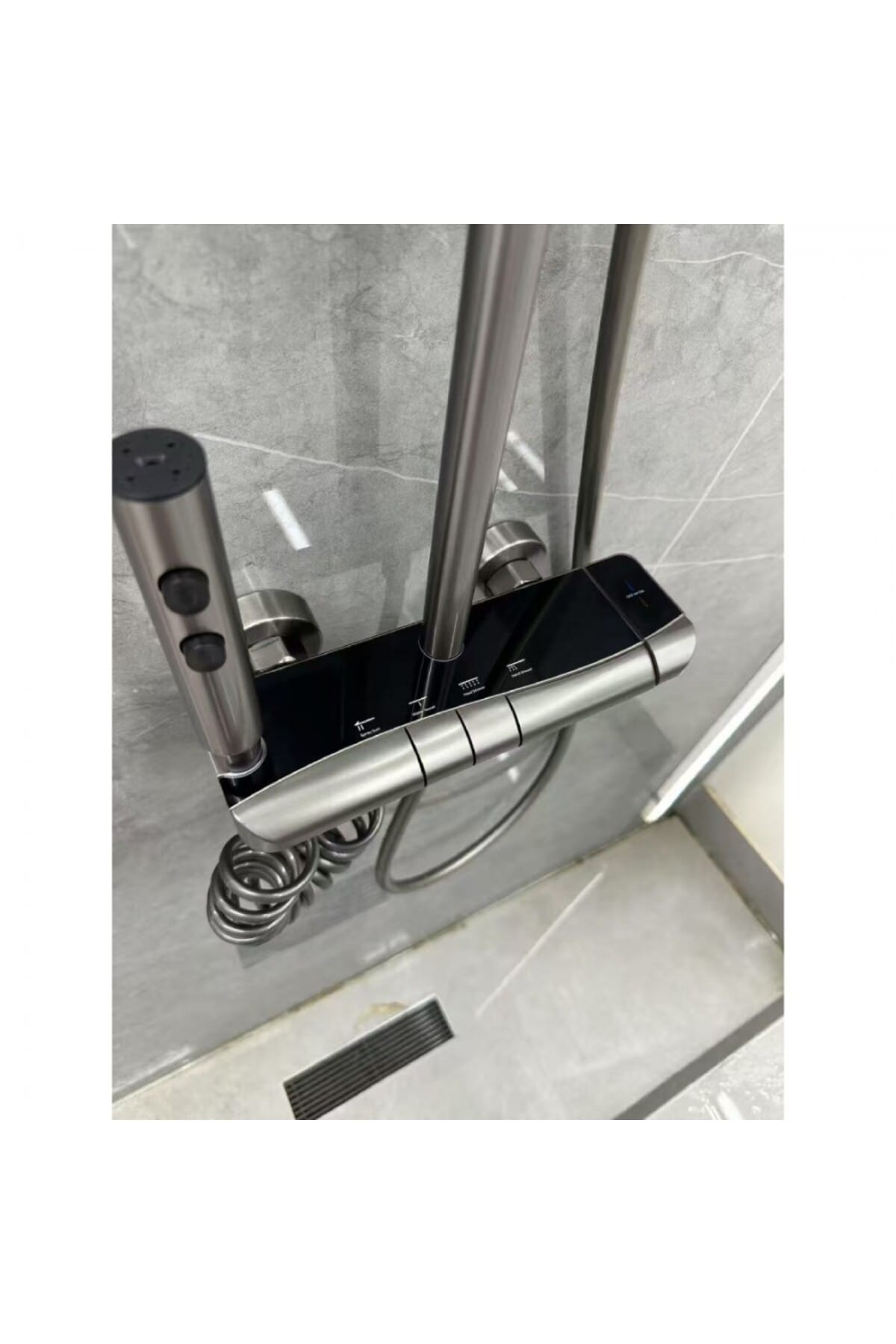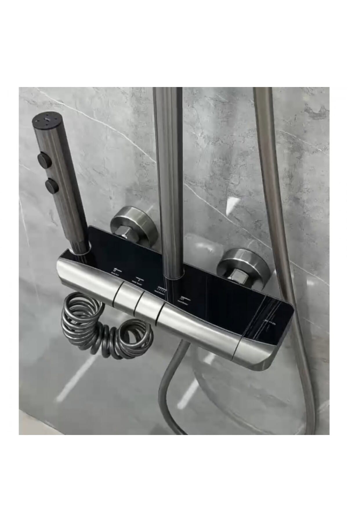 Adauga un accent modern si functional baii tale cu acest Set Coloana Dus Premium, care combina un design simplu cu usurinta in utilizare.; Controlat prin Butoane Piano, setul ofera 4 functii de pulverizare pentru o experienta de dus completa, in timp ce finisajul Negru confera eleganta.; Design Modern si Control PianoColoana de dus este proiectata pentru a fi estetica si usor de manevrat.; Design: Aspect modern si minimalist, cu linii clare.; Finisaj: Culoare Negru – finisaj uniform si elegant, potrivit pentru baile contemporane.; Comanda Piano: Echipat cu Butoane Piano tactile pentru selectarea rapida si intuitiva a functiilor de curgere.4 Functii de Curgere (Ploaie Relaxanta)Ofera o varietate de jeturi necesare pentru rutina zilnica de igiena.4 Functii: Permite utilizarea celor mai populare optiuni:Ploaie Relaxanta (Cap Superior): Jet amplu si fin pentru un dus odihnitor.; Para Dus Mobila: Flexibila, cu furtun lung, excelenta pentru utilizare tintita.; Gura de Scurgere (Spout): Iesire inferioara a apei, utila.; Jet Suplimentar: A patra functie pentru variatie.; Tip Ploaie: Capul superior de dus este conceput special pentru un jet de tip Ploaie Relaxanta.; Constructie si MontajMateriale: Construit din materiale durabile si rezistente.; Montaj: Proiectat pentru montaj pe perete.; Specificatii CheieNumar Functii: 4Comanda: Butoane PianoFinisaj: NegruTip Dus: Ploaie RelaxantaDesign: Modern