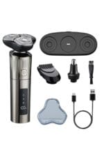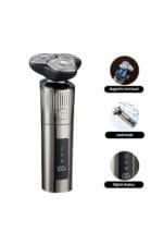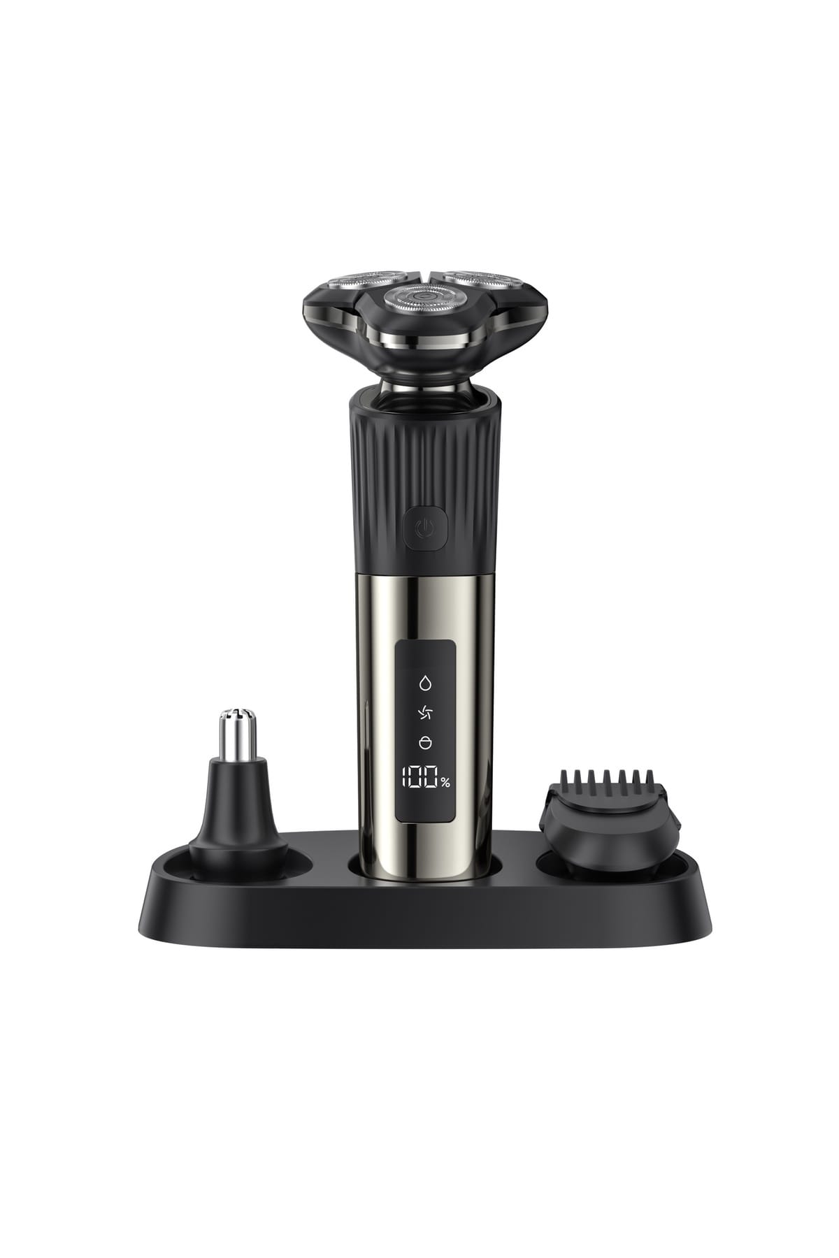 Cauti un dispozitiv de ingrijire universal? Acest Set 3-in-1 Fara Fir combina eficienta si versatilitatea, fiind solutia completa pentru barbierit, tuns barba si mustata, si indepartarea parului din nas si urechi.; Este conceput pentru a oferi un barbierit curat si ingrijit, fara iritatii, fiind ideal pentru barbatii care apreciaza precizia.; Functionalitate 3-in-1 si PrecizieSetul ofera trei dispozitive esentiale intr-un singur corp, cu accesorii usor de inlocuit.; Functii Principale: Un complex multifunctional ce include:Aparat de Ras (cu capete care urmaresc conturul fetei).; Aparat de Tuns Barba si Mustata (Trimmer obisnuit).; Aparat de Tuns Nas si Urechi (Indeparteaza in siguranta parul nedorit).; Barbierit Uscat: Conceput pentru rasul uscat, fiind potrivit chiar si pentru pielea sensibila.; Tehnologie Avansata si Incarcare RapidaAparatul este echipat cu display LED si baterie reincarcabila, oferind confort in utilizare.; Utilizare Fara Fir: Bateria incorporata (1000 mAh) permite utilizarea in orice conditii, oferind pana la 60 de minute de functionare continua.; Incarcare Rapida: Incarcare completa in doar 1,5 ore prin USB Type-C.; Afisaj LED Digital: Arata nivelul de incarcare al bateriei (0–100%) si starea de blocare a dispozitivului.; Stand de Incarcare: Include un suport stativ convenabil pentru depozitare si incarcare.; Motor Puternic: Motor de 3.2 V, 10000 rpm.; Design si SigurantaDesign Ergonomic: Usor de manevrat si intretinut, cu inlocuire facila a accesoriilor.; Sistem de Blocare: Include sistem de blocare pentru transport in siguranta.; Intretinere: Aparatul de ras este usor de dezasamblat pentru curatare.; Specificatii CheieTip: Set Ingrijire 3-in-1 (Ras, Tuns, Nas/Urechi)Alimentare: Baterie incorporata 3.7V, 1000 mAhTimp Functionare: Pana la 60 de minuteTimp Incarcare: 1,5 oreTip Incarcare: USB Tip CDisplay: LED (indicator incarcare si blocare)Tip Barbierit: Uscat
