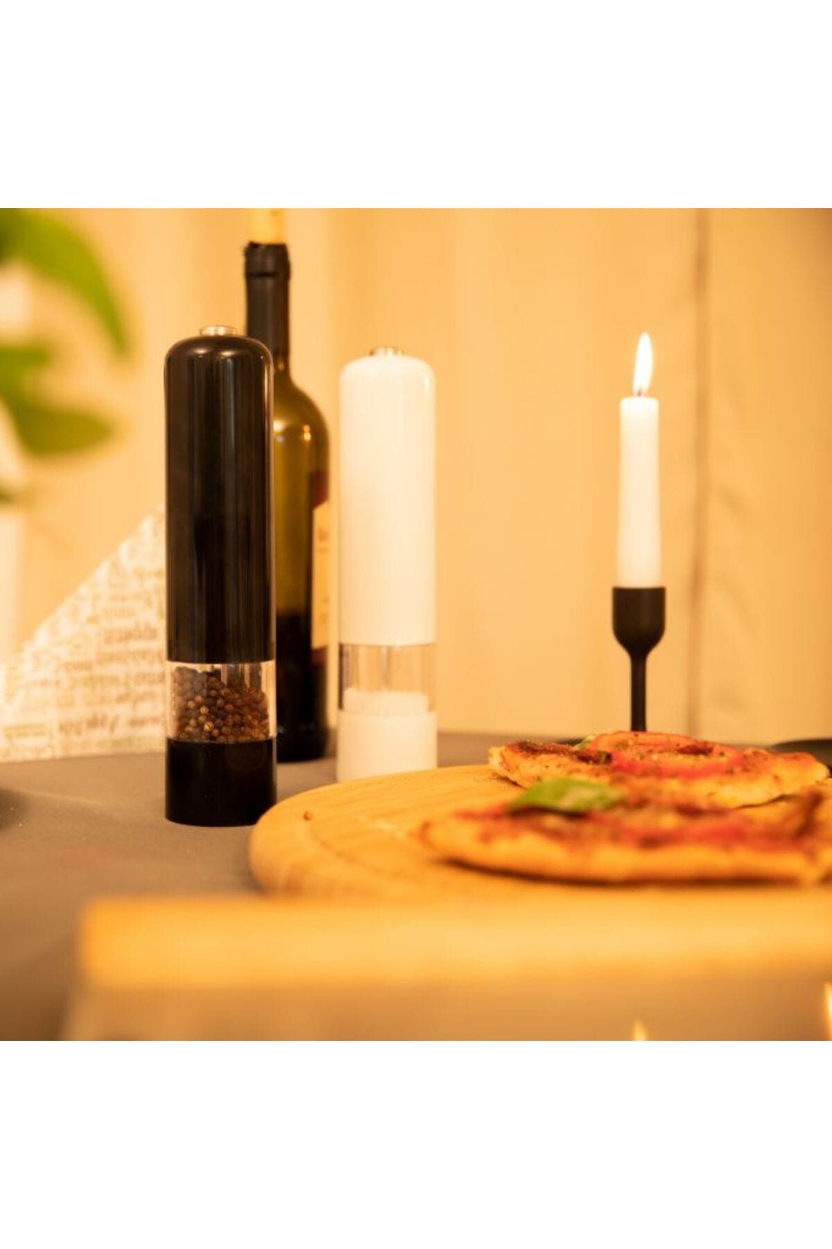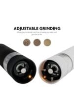 Descopera confortul gatitului cu acest Set de 2 Rasnite Automate pentru Condimente, care functioneaza cu o singura mana.; Ideale pentru utilizare acasa, la picnicuri sau excursii, acestea ofera un control precis al macinarii si iluminare LED.; Operare Automata si Control al FinetiiRasnitele sunt concepute pentru a simplifica procesul de condimentare, oferind precizie si usurinta in utilizare.; Operare cu O Singura Mana: Permit condimentarea rapida si usoara, eliberandu-ti cealalta mana pentru a continua sarcinile de gatit.; Grosime Reglabila: Prin rotirea butonului de la baza, poti selecta finetea condimentelor: fin, mediu sau grosier, obtinand pudra perfecta.; Lame Inox: Echipate cu lama din Inox (mentionat in titlu) pentru o macinare eficienta si de lunga durata.; Iluminare LED: Include iluminare LED pentru a vedea exact cat condiment adaugi in mancare.; Putere si PortabilitateDesignul usor si alimentarea pe baterii asigura portabilitate si eficienta energetica.; Alimentare: Necesita doar 4 baterii AA (pe rasnita, nu sunt incluse) pentru a functiona cu un consum minim de energie.; Design Usor: Realizate din materiale durabile, rasnitele sunt usoare si versatile, perfecte pentru a fi purtate la picnicuri sau excursii.; Culoare: Setul include rasnite in culorile Negru si Alb.; Acest set transforma condimentarea intr-un proces simplu, rapid si precis.