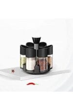 Set recipiente pentru condimente, suport rotativ, 6 recipiente, 18x16x12cm, negru