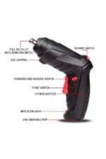 Set Surubelnita Electrica, 3.6V, 48 de accesorii, Maner Pivotant, LED, 700 rpm, Geanta de Transport