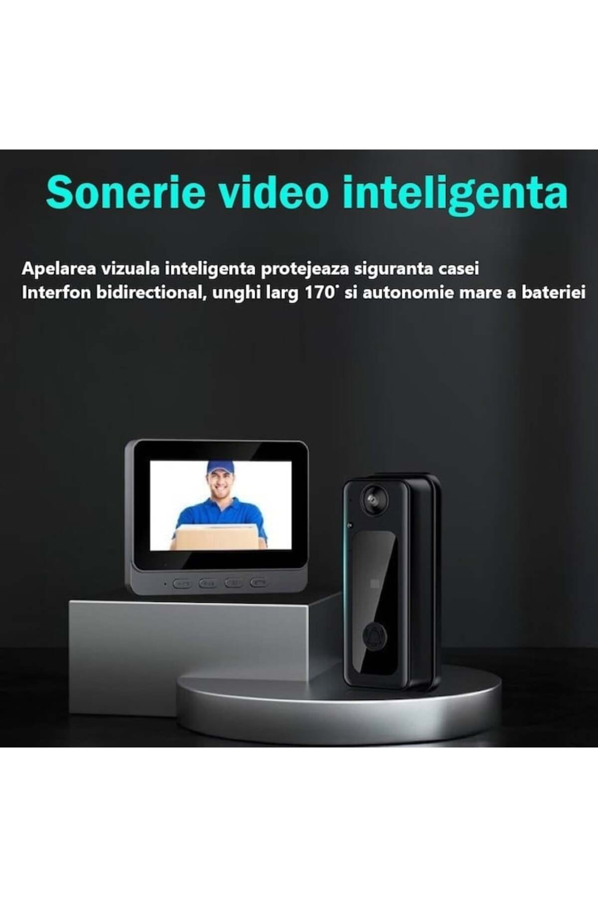 Asigura-ti locuinta cu aceasta Sonerie Video Inteligenta Fara Cabluri, un dispozitiv esential pentru securitate si confort.; Echipata cu o camera HD de 8MP, night vision si conectivitate Bluetooth, iti permite sa monitorizezi si sa comunici cu vizitatorii de oriunde.; Securitate Avansata si Vizualizare CompletaSoneria ofera imagini clare, un unghi larg de vizualizare si detectie eficienta.; Camera HD 8MP: Ofera o imagine clara si detaliata a zonei din fata usii.; Night Vision: Echipata cu infrarosu, asigura vizibilitate perfecta si pe timp de noapte.; Unghi Larg: Ofera un unghi de vizualizare de 170°, asigurand o acoperire larga a zonei si eliminand punctele moarte.; Senzor IR: Detecteaza miscarea si trimite alerte in timp real (securitate sporita).; Comunicare si Instalare SimplaFunctionarea pe baterii elimina necesitatea cablurilor complicate.; Comunicatie Bidirectionala: Functia de interfon video permite sa vorbesti direct cu vizitatorii, chiar si de la distanta.; Fara Cabluri: Functioneaza pe baterii incorporate, oferind autonomie ridicata si permitand instalarea usoara oriunde, fara nevoie de prize sau fire.; Conectivitate: Bluetooth pentru control simplu si rapid de pe dispozitive smart.; Design: Compact, discret, in culoare neagra, potrivit pentru orice tip de locuinta sau birou.; Specificatii CheieRezolutie: 8MP HDUnghi Vizualizare: 170°Conectivitate: BluetoothAlimentare: Baterii Incorporate (Fara Cabluri)Functii: Interfon Bidirectional, Night Vision, Senzor Miscare IRCuloare: Negru