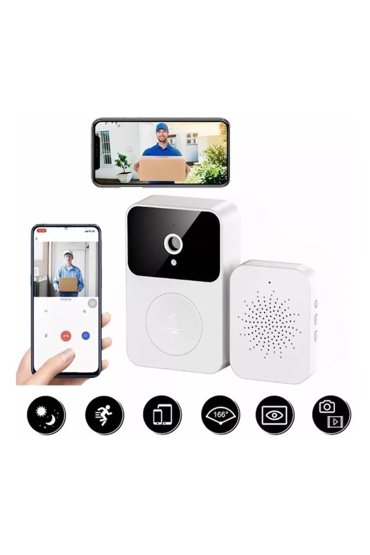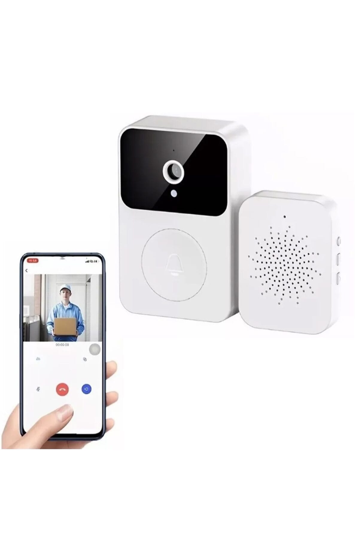 Creste nivelul de securitate al locuintei tale cu aceasta Sonerie Video (Interfon) Wi-Fi, care ofera monitorizare HD, comunicare bidirectionala si functii de securitate avansate, toate controlate direct de pe telefon.; Este o solutie ideala pentru a raspunde vizitatorilor de oriunde te-ai afla.; Securitate si Monitorizare Avansata Soneria asigura vizualizarea clara si capturarea imaginilor chiar si pe timp de noapte.; Camera HD si Night Vision: Echipata cu functie de vedere nocturna cu infrarosu de inalta definitie, soneria poate comuta automat intre modul zi si noapte, asigurand monitorizare clara non-stop.; Captura Imagini: Poate captura imagini si le poate stoca in cloud (mentionat in descriere) pentru protectie de securitate.; Detectie: Trimite notificari imediate pe telefon atunci cand detecteaza miscare (implica notificare la sonerie).; Apel Video si Functie Inovatoare de Interfon Permite comunicarea eficienta si sigura cu vizitatorii.; Apel Video: Suporta apel video si permite raspunsul facil la vizitatori direct de pe smartphone.; Schimbare Voce: Functie inovatoare de schimbare a vocii (doua moduri: sunet original si sunet unchi).; Aceasta ofera un plus de securitate atunci cand sunteti singur acasa.; Alimentare si Instalare Simpla Soneria este conceputa pentru a fi usor de instalat si are o autonomie extinsa.; Acumulator Reincarcabil: Soneria are un acumulator reincarcabil circulant incorporat, oferind un timp de asteptare ultra lung de 365 de zile.; Spune adio inlocuirii constante a bateriilor.; Melodii: Include 38 de piese muzicale incorporate care pot fi comutate, iar volumul poate fi reglat.; Masina Dingdong este alimentata prin USB.; Instalare Portabila: Poate fi instalata usor fie prin lipire cu adeziv, fie prin montare cu gauri (dibluri/suruburi).