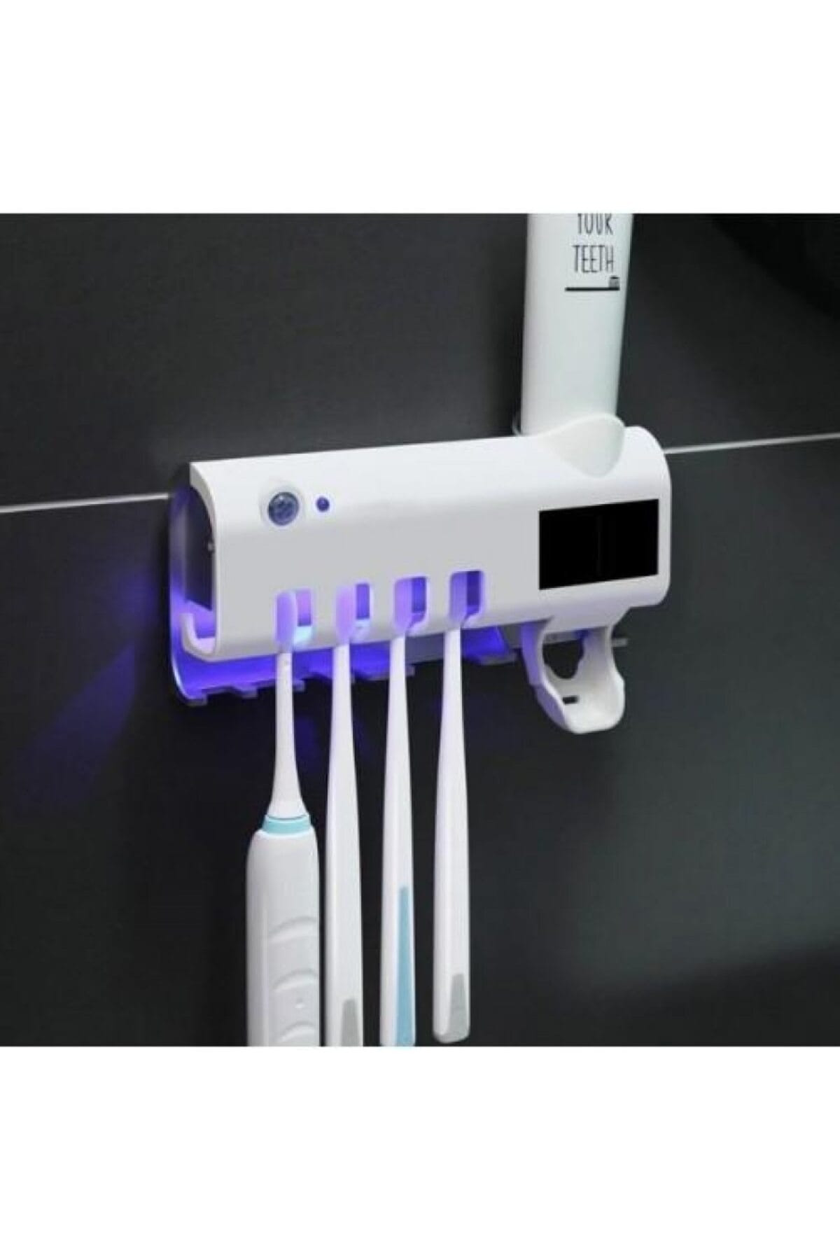 Suport Periute Dinti, Sterilizator UV, Dozator Pasta Dinti, 3 in 1, Montare Perete